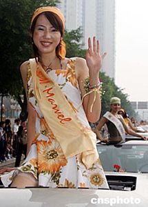 參加第十六屆世界模特小姐總決賽的世界各國參賽佳麗,五月十三日來到廣州進(jìn)行慈善巡游活動。作者:史一博