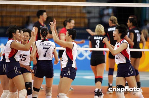 中新社雅典八月二十日電 中國女排在奧運會女排預(yù)賽第四輪中憑借穩(wěn)定的發(fā)揮以三比0輕松戰(zhàn)勝德國隊。
