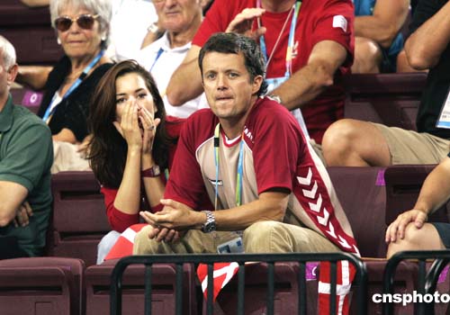 圖為丹麥王儲(chǔ)弗雷德里克攜王妃瑪麗來到奧運(yùn)比賽現(xiàn)場,觀看當(dāng)?shù)貢r(shí)間19日舉行的手球預(yù)賽,該比賽在丹麥與西班牙之間進(jìn)行。