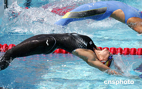 圖為在當?shù)貢r間8月19日舉行的女子200米仰泳比賽中選手們的精彩表現(xiàn)。