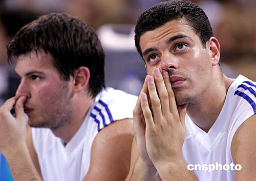 在當(dāng)?shù)貢r(shí)間8月19日進(jìn)行的男子籃球比賽中,希臘隊(duì)以76比98不敵立陶宛。圖為希臘隊(duì)員露出無(wú)奈的表情。