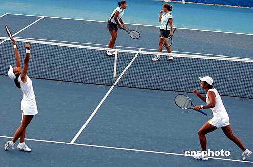 李婷/孫甜甜今晚在雅典創(chuàng)造了中國網(wǎng)球界的新紀(jì)錄,她們二人在奧運(yùn)會(huì)網(wǎng)球女雙半決賽中耗時(shí)二小時(shí)十一分,以二比一(六比二、二比六,九比七)戰(zhàn)勝阿根廷組合蘇亞雷茲/塔拉比尼闖入決賽。