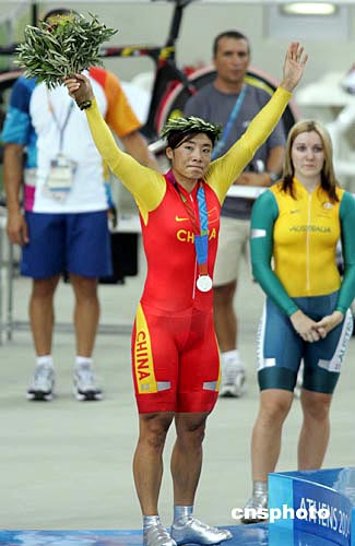 當(dāng)?shù)貢r間八月二十日下午,在雅典奧運會女子自行車五百米計時賽中,世界紀(jì)錄保持者江永華以微弱差距惜敗澳大利亞選手MEARES,獲得銀牌。中新社記者:毛建軍