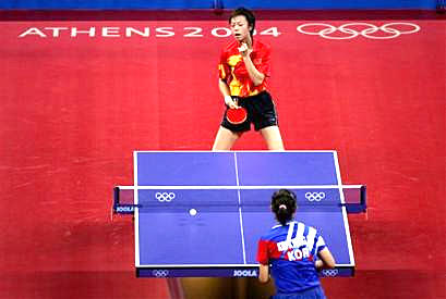 中新網8月21日電 剛剛結束的第28屆雅典奧運會乒乓球女子單打半決賽第一場比賽中,中國選手張怡寧以4:1的總比分擊敗韓國選手率先進行決賽。決賽將在北京時間8月22日晚舉行。