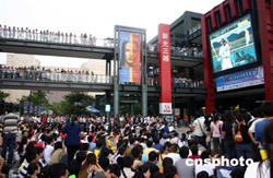 中國臺北棒球隊的背水一戰(zhàn),全臺都在關(guān)注,像京華城里這樣的轉(zhuǎn)播大看臺在島內(nèi)許多地方都有,以供球迷一起高喊加油。不少名人也加入其列。
