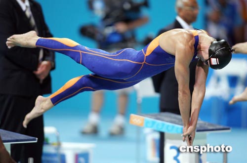 當(dāng)?shù)貢r(shí)間八月二十一日晚,在雅典奧運(yùn)女子五十米自由泳決賽中,荷蘭名將德布魯因獲得冠軍。中新社記者:毛建軍