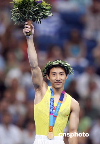 中新社雅典八月二十二日電 (記者 宋方燦)雅典奧運(yùn)會(huì)體操鞍馬比賽今天晚上進(jìn)行,中國(guó)兩名選手參加了比賽。滕海濱在比賽中發(fā)揮出自己的水平,以九點(diǎn)八三七分摘取金牌。
