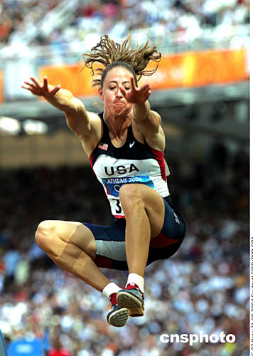 圖為在當(dāng)?shù)貢r間8月21日舉行的女子七項全能跳遠(yuǎn)項目比賽中,蒂法內(nèi)-洛特-霍甘(Tiffany Lott-Hogan)的出色表現(xiàn)。