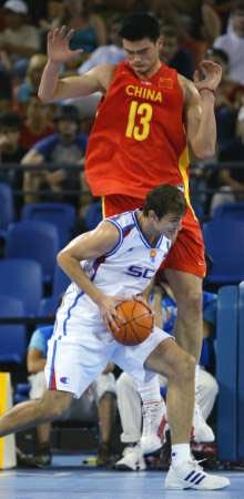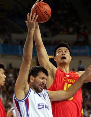 本戰(zhàn)之前,中國隊與塞黑皆一勝三負(fù),本場比賽的勝負(fù)將決定最終誰能闖入八強。盡管比賽一開始中國隊仍然屢屢出現(xiàn)失誤,但投手李楠的復(fù)活、姚明良好的手感及全隊破釜沉舟的攻防氣勢,使得塞黑隊亂了陣腳。在比賽中,塞黑隊不僅失去了投籃的精準(zhǔn),而且內(nèi)線進(jìn)攻屢屢受挫,加之防守速度的遲緩,最終令中國隊在終局后來居上,一分反超。