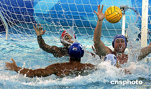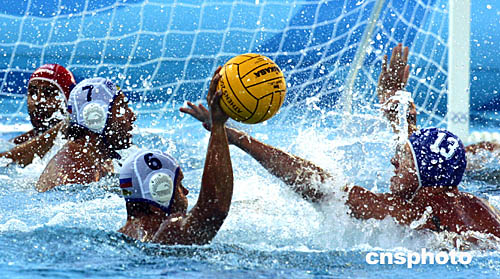 圖為在當(dāng)?shù)貢r(shí)間8月23日舉行的埃及隊(duì)和西班牙隊(duì)的水球比賽畫(huà)面。