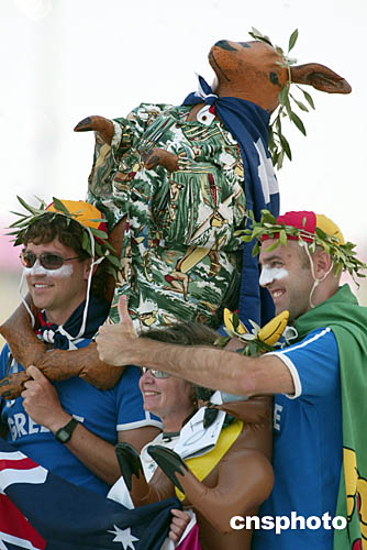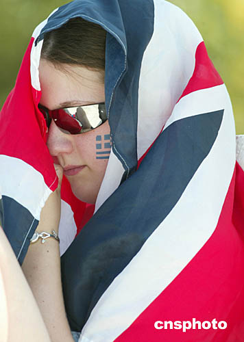 圖為世界各地的人們齊聚雅典來為支持自己國家的運(yùn)動員。