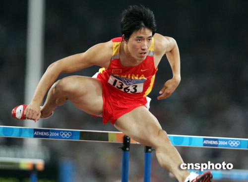 當(dāng)?shù)貢r(shí)間八月二十五日晚,在雅典奧運(yùn)會(huì)田徑男子一百一十米跨欄第二輪比賽中,中國選手劉翔順利地以十三秒二六的成績獲得小組第一,進(jìn)入半決賽。中新社記者:毛建軍