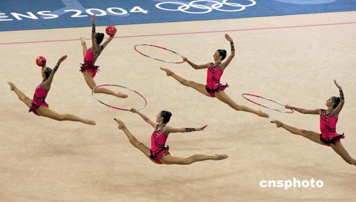 雅典時間8月28日,2004年奧運會藝術(shù)體操決賽在雅典舉行,俄羅斯隊以51.100分的最高分奪得冠軍。中新社記者:王瑤