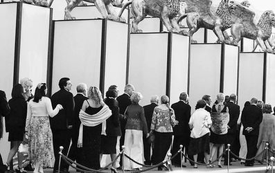 不知道從什么時候開始,歐洲電影節(jié)和罷工游行就像孿生兄弟一樣,形影不離。本屆威尼斯電影節(jié)也不能幸免。傍晚時分,在參展演員和導(dǎo)演下榻的威斯汀酒店外,一群統(tǒng)一著裝的人組成方隊圍在門口,他們每個人身上都掛著大紙牌,紙牌背面寫著:“威娜”危害身體健康,請禁止其生產(chǎn)。原來本屆電影節(jié)最大的贊助商之一就是世界知名美發(fā)廠商“威娜”。電影節(jié)開幕式開始,明星們走上紅地毯時,還不斷有游行隊伍在周圍逡巡,不過,盡管是游行,他們的態(tài)度卻很平和,沉默寡言,絲毫沒有影響電影節(jié)開幕式的進行。