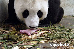 據(jù)了解,今年八月剛滿五歲的“華美”一九九九年出生于美國圣地亞哥動物園,今年二月十三日回到四川臥龍定居,它是采用人工授精技術在美國出生并存活的第一只熊貓幼仔。今年四月下旬,已是個“大姑娘”的“華美”發(fā)情后,專家們特地為“華美”找了個“如意郎君”大熊貓“靈靈”。五月二日,這兩只大熊貓成功地實現(xiàn)了本交。為增加“華美”受孕的成功機率,科研人員在本交后的幾天里又對她進行了四次人工授精。“華美”終于成功懷孕產仔。
