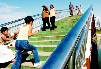 自稱(chēng)對(duì)建筑懂行的李大爺說(shuō),估計(jì)橋的質(zhì)量沒(méi)有問(wèn)題,否則就不會(huì)通行了。游人和附近居民對(duì)此均表示,很高興可以登上彩虹橋,再也不用繞遠(yuǎn)路過(guò)河了。(公冶祥波)