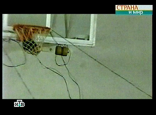 過后,健身室成了戰(zhàn)場。一名武裝分子蹲在地上處理炸彈,地上撒滿電線和相信是引爆炸彈的儀器。有些婦女抱著小孩,一枚炸彈就懸掛在穿過房間的幾條電線和籃球的網(wǎng)圈上。