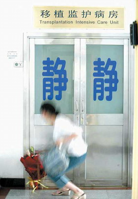 記者從一位病友家屬處了解到,移植監(jiān)護(hù)病房屬于特重病人區(qū),要求非常嚴(yán)格。一般人根本不能進(jìn)入。監(jiān)護(hù)病房一般都是剛剛做完大手術(shù)的病人,由于需要無菌環(huán)境,連家屬送飯都要在紅線之外,通過醫(yī)生轉(zhuǎn)交到病人手里,器皿也要反復(fù)消毒。病房每天探視時間也只有半小時。記者趕到時已經(jīng)過了探視時間,只好在監(jiān)護(hù)病房外苦苦等候,一旦有醫(yī)生出來,記者就上前了解,希望能從醫(yī)生口中知道一些現(xiàn)況,但都被醫(yī)生拒絕了。兩個小時后,一位好心的病友家屬和記者攀談起來,從她嘴中記者才知道,傅彪手術(shù)進(jìn)行了13個小時,目前情況還不太穩(wěn)定,由三個醫(yī)生親自看護(hù),醫(yī)生照料非常精心,技術(shù)也非常高超,只要身體底子好,一般手術(shù)后三四天就能正常吃東西,到普通病房住了。不過談到手術(shù)費(fèi)用,病友家屬表示,自己的愛人也剛剛做了肝移植手術(shù),手術(shù)最少也要30萬元。由于移植了新肝,一般病人都會出現(xiàn)排斥反應(yīng),病人一生都要吃一種減輕排斥的藥。一天吃4粒,每粒40元?梢灶A(yù)見,即使痊愈后,病人也將背上沉重的經(jīng)濟(jì)壓力。