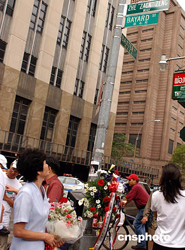 據(jù)美國僑報報道,“曾喆街”命名掛牌儀式在“911”紀念日當(dāng)天下午1時30分在紐約華埠舉行,華埠的擺也街從茂比利街到巴士打街之間地段屆時將被永久性地命名為“曾喆街”。