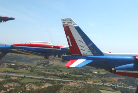 法國空軍的“法蘭西巡邏兵”飛行表演隊正式成立于1964年2月。飛行表演隊的飛機涂著同法國國旗一樣的紅、白、藍三種顏色,機群在空中做飛行表演時也常常把著三種顏色的煙跡留在空中。它象征著“自由”(紅色)、“民主”(白色)、“博愛”(藍色),體現(xiàn)了法國人民勇敢、浪漫的傳統(tǒng)和對未來美好的愿望。圖為飛行表演隊正在作精彩的飛行表演(來源:艦船知識網(wǎng)絡(luò)版)