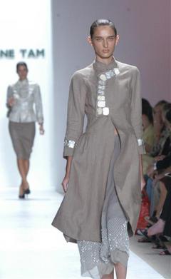 中新網(wǎng)9月15日電 據(jù)世界日報報道,曼哈頓13日舉行2005年春裝新展,知名華裔服裝設(shè)計師譚燕玉,采用中國云南“苗族”服飾因素,將鮮度極高的色彩與中性色調(diào)相搭襯,配上大膽的亮銀色,激起一股視覺震撼。