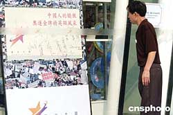 星光大道商店展示的中國奧運(yùn)金牌選手簽名板,吸引游客駐足觀看。作者:洪少葵