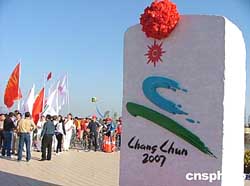 長春二零零七年第六屆亞洲冬季運動會會徽九月二十一日下午在長春市揭曉。深圳市王春濤設計的作品“飛越”最終當選為亞冬會會徽。會徽以兩個英文字母“C”組成,是跳臺滑雪的運動造型,它既代表第六屆亞冬會的舉辦國“中國”和舉辦城市“長春”,又體現(xiàn)了更高、更快、更強的奧林匹克精神。中新社記者:吳兆飛