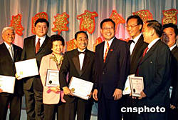 當(dāng)?shù)貢r(shí)間九月二十三日,由美國(guó)華人企業(yè)家和著名華商團(tuán)體領(lǐng)袖發(fā)起成立的美國(guó)華商會(huì)在紐約舉行職員就職典禮,中國(guó)駐紐約總領(lǐng)事劉碧偉(左五)向商會(huì)會(huì)長(zhǎng)、秘書長(zhǎng)、理事等三十多人頒發(fā)了就職證書。作者:趙海燕