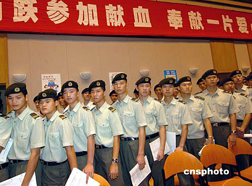 據(jù)香港中通社報道,今天上午,來自陸、海、空三軍的四百名官兵精神抖擻,以獻(xiàn)血這種方式,表達(dá)對香港市民的愛心。駐港部隊司令員王繼堂視察了獻(xiàn)血活動。他說,駐港部隊官兵參加這一活動,是對香港市民、香港社會的貢獻(xiàn),用這種行動贏得香港市民、香港社會的了解,也是展示駐港部隊“文明之師,威武之師”的機(jī)會,有利于進(jìn)一步增進(jìn)駐軍與香港市民、香港社會的溝通,加深市民對駐軍的了解。