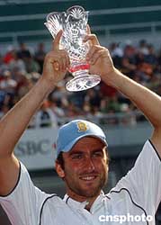 九月二十六日,中國網(wǎng)球公開賽ATP男子單打挑戰(zhàn)賽決賽在北京網(wǎng)球中心中央球場進(jìn)行,兩位美國選手同場競技,最終美國選手吉姆斯托博二比零戰(zhàn)勝隊友波格莫洛夫奪冠。