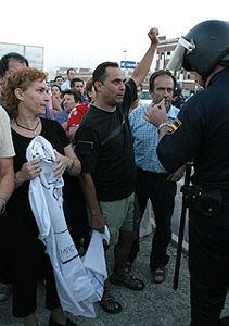 游行隊伍最初想進入位于工業(yè)城中的中國人貨倉,然而由于警察已經(jīng)在游行開始之前全面封鎖了中國人貨倉,因此這些游行群眾不得已之下又來到了埃爾切市政府門口。他們高舉標語,對埃爾切市長Diego Macià在中國鞋業(yè)問題上的軟弱表示了極大的不滿。游行群眾高呼:現(xiàn)在埃爾切制鞋工人中的失業(yè)率已經(jīng)高達30%,因此市政府應該盡快想辦法解決來自中國鞋業(yè)的巨大沖擊。