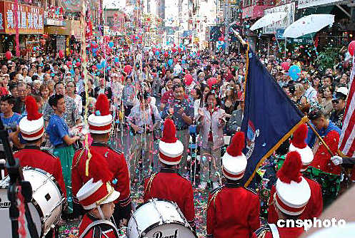 紐約華埠獅龍競(jìng)舞歡度中秋
