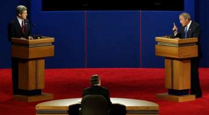 其實(shí),今年總統(tǒng)大選的首場辯論主題是外交政策和國土安全。但九十分鐘里,兩人用三分之二的時間,圍著伊拉克唇槍舍劍,不依不饒。除了伊拉克,他們簡單談?wù)摰降牡胤,只有朝鮮、伊朗、蘇丹和俄羅斯。但兩人的主張都如此不鮮明,以至于主持人不得不分別替他們總結(jié)論點(diǎn)。