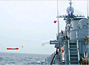 韓國國防發(fā)展局同時宣布,今年5月已經(jīng)兩次成功試射了另一種重型魚雷“白鯊”!鞍柞彙钡难邪l(fā)是由國防發(fā)展局同幾家大學(xué)和私營公司共同進行的,始于1998年,已經(jīng)投入了300億韓元的資金。去年也曾經(jīng)進行過“白鯊”的試射,但是由于軟件的問題沒有擊中目標(biāo)。該局官員表示,“白鯊”重型魚雷將被安裝在潛艇上,用以打擊敵方的水面艦只和潛艇。(章田/雅龍)