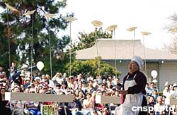 美西時間十月二日,北加州華人聯(lián)盟在加州聯(lián)合城舉辦一年一度的硅谷歡慶中秋佳節(jié)及迎中國國慶游園會。圖為雜技名家夏克敏先生在題為“中國心·硅谷情”的游園會表演雜技。作者:陳鋼