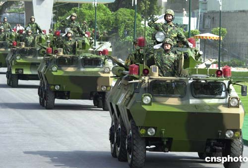 上午,當(dāng)澳門特別行政區(qū)行政長官何厚鏵、澳門中聯(lián)辦主任白志健和多位特區(qū)政府官員及社會各界人士進入營區(qū)時,受到駐澳門部隊司令員劉聯(lián)華少將、政治委員楊忠民少將等駐軍官兵熱烈歡迎,特首與市民興致勃勃觀看了升國旗儀式、儀仗隊隊列操槍、刺殺團體操、裝甲車縱隊行進等軍事科目表演,官兵精湛的軍事技術(shù)、良好的精神風(fēng)貌,贏得了澳門市民的陣陣掌聲。