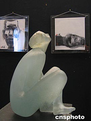 十月一日至十日,在巴黎最高的畫廊——距地面一百多米的拉迪芳斯新凱旋門畫廊舉辦了一個(gè)匯粹了中法兩國藝術(shù)家并集繪畫、雕塑、攝影于一體的大型展覽。來自浙江畫院的十八位畫家的八十余幅中國畫、來自浙江嘉興的二十五位攝影家拍攝的近百幅照片,同法國雕塑家的雕塑作品一道展出,東西方文化間的交流與對(duì)比表現(xiàn)得淋漓盡致。圖為中國畫家寫意中國畫前的法國雕塑家的人體雕塑作品,兩者風(fēng)格迥異,卻顧盼成趣。作者:鐘誠