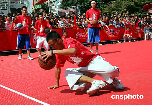 十月五日,“二零零四可口可樂NBA嘉年華”在上海體育館舉行,并推出灌籃斗秀、定點(diǎn)投籃挑戰(zhàn)賽、三分球比賽等活動,讓上海市民和籃球迷們在國慶黃金周中免費(fèi)體驗NBA籃球激情。作者:潘索菲