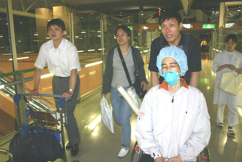 10月5日晚上8點半,救護車載著病人到了關(guān)西空港,趙大為領(lǐng)事和劉政領(lǐng)事親自推著輪椅向登記口走去,中國東方航空公司大阪支店長黃青平得知這一情況后,立即免費把病人安排到頭等艙,中國駐大阪總領(lǐng)事邱國洪在病人登機前通過電話向他表示了問候,9點鐘飛機載著病人飛向了祖國。(記者叢中笑)