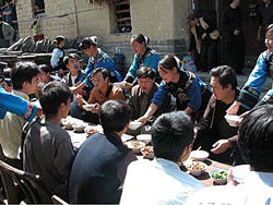 十一黃金周期間,充滿神秘色彩的湘西游客絡(luò)繹不絕。美麗的風(fēng)光和濃郁的民族文化讓游客流連往返,嘗嘗美味的農(nóng)家飯自然是不可少。圖為苗家姑娘唱著山歌為游客送上醇香的自制米酒。作者:劉雙雙