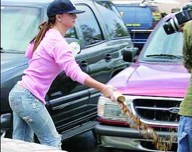 10月6日,布蘭妮與新婚夫君凱文·費(fèi)德林在一家三明治店外排隊(duì)等候買快餐時(shí)發(fā)現(xiàn)有狗仔隊(duì)的人在對(duì)他們進(jìn)行偷拍。布蘭妮實(shí)在氣憤不過,用手指著偷拍她與凱文·費(fèi)德林的狗仔隊(duì)攝影師破口大罵。后來(lái)也許是怒極反笑的緣故,布蘭妮突然間又大笑起來(lái),笑完之后就鉆進(jìn)自己的汽車?yán)铩6谂赃吀继m妮狂笑的凱文也對(duì)著那名狗仔隊(duì)攝影師大吼:“這就是你靠得太近的下場(chǎng)!
