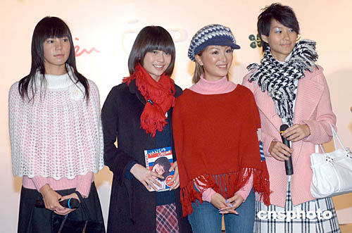 歌星吳日言、藝員利嘉儀、張?jiān)伓?左一)、張?jiān)佸?右一)10月7日在香港出席時(shí)裝連鎖店OPA又一城旗艦店開(kāi)幕,并為該店展示秋冬時(shí)裝。