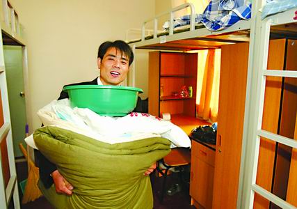 8號是中國社會科學(xué)院研究生院新生報到的日子,辦完報到手續(xù),郭榮慶領(lǐng)到了宿舍鑰匙和自己的被褥、生活用品。宿舍里住了六個人,每人有一套書桌椅和柜子,光線很充足。郭榮慶興奮地打量著新住處,說:“比我原來住的偏房可強多了!保ㄍ跚飳崳