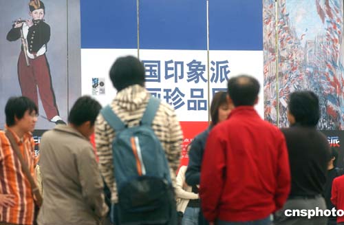 十月十日,“法國印象派珍品展”在北京中國美術(shù)館開幕,展品匯集了法國印象派代表人物莫奈、馬奈等大師的五十一幅原作,成為中法文化年中最重要的展事之一。據(jù)悉,由于展品屬于法國國家的藏品,保險金額高達(dá)五億歐元。