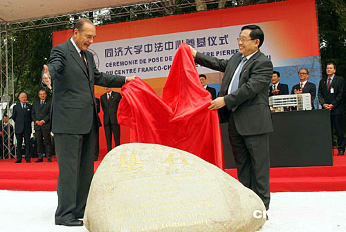 素有“中國情結(jié)”的法國總統(tǒng)希拉克今天一到上海就來到著名高等學(xué)府同濟大學(xué),向全中國青年滿懷感情地表達來自法國的友誼與共同接受新世紀挑戰(zhàn)的美好愿望,并接受了中國學(xué)子寓意中法友誼長存的禮物。