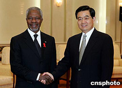 安南感謝胡錦濤主席的會見,表示贊同胡主席對國際形勢的分析和看法,感謝中國政府長期以來對聯(lián)合國和他本人工作的支持。安南說,中國在國際事務(wù)中的作用和影響正日益上升,是維護世界和平與發(fā)展的重要力量。在實現(xiàn)聯(lián)合國提出的千年發(fā)展目標(biāo)方面,中國政府取得了積極的成果。聯(lián)合國改革的目的是使聯(lián)合國更好地應(yīng)對各類威脅與挑戰(zhàn),需要包括中國在內(nèi)的廣大會員國繼續(xù)給予大力支持。