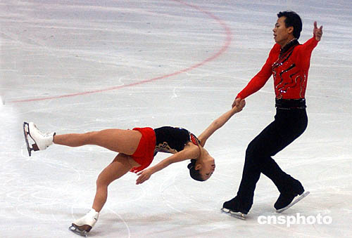 十月十三日,中國花樣滑冰隊在北京首都體育館進(jìn)行隊內(nèi)測試,備戰(zhàn)即將舉行的世界花樣滑冰大獎賽美國站比賽。圖為中國花樣滑名將申雪、趙宏博演繹自由滑新編曲目《宋氏王朝》。中新社記者:武仲林