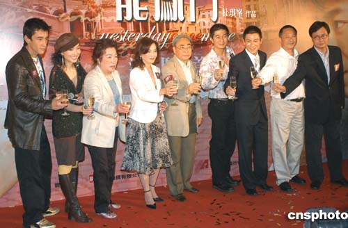 港產電影《龍鳳斗》10日13日晚在香港時代廣場舉行龍鳳激斗首映禮,《龍鳳斗》臺前幕后與贊助商于首映禮上舉杯預祝票房旺收。作者:鄧慶樂