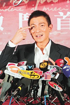 劉德華出席儀式后,即時(shí)滿頭大汗。問(wèn)到他是否因?yàn)镾ammi太低胸?他笑指對(duì)方件衫真是好V,自己都不禁望多兩眼;但他反而更留意Sammi將頭發(fā)染成黑色,十分好看。