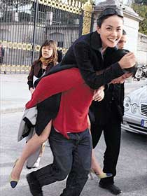 中新網(wǎng)10月16日電 冷若冰山的王菲,在巴黎街頭突一反常態(tài),大庭廣眾下向設(shè)計師撒嬌,非要他背著她繞街跑一圈不可,兩度表現(xiàn)失常。